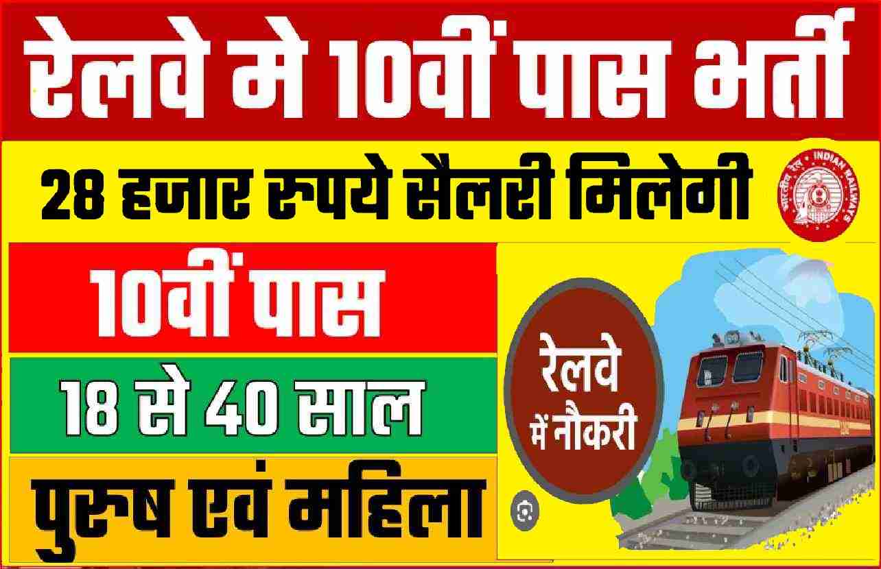 Indian Railway Bharti : 10वीं पास युवाओ के लिए रेलवे मे बम्पर भर्ती, वेतन 28 हजार पाने के लिए करे आवेदन